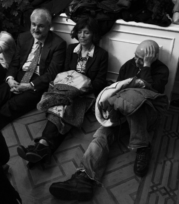 No entiendo bien la foto. ¿Dónde está tomada? ¿En la acera, antes de entrar? ¿Ya dentro, en el suelo porque no había sillas suficientes?